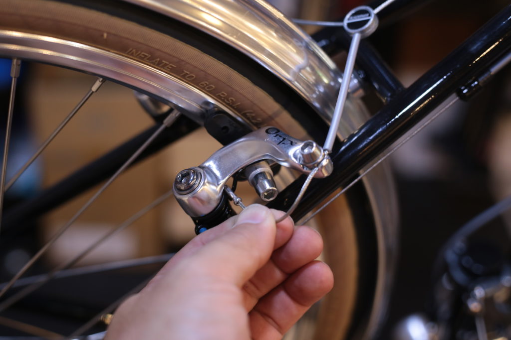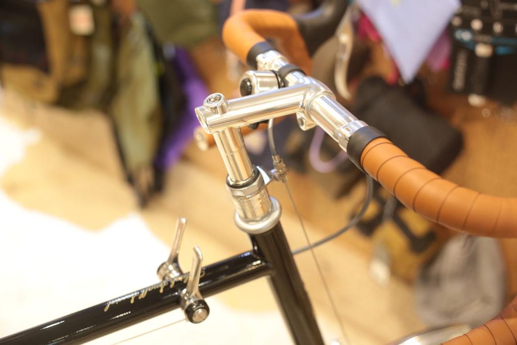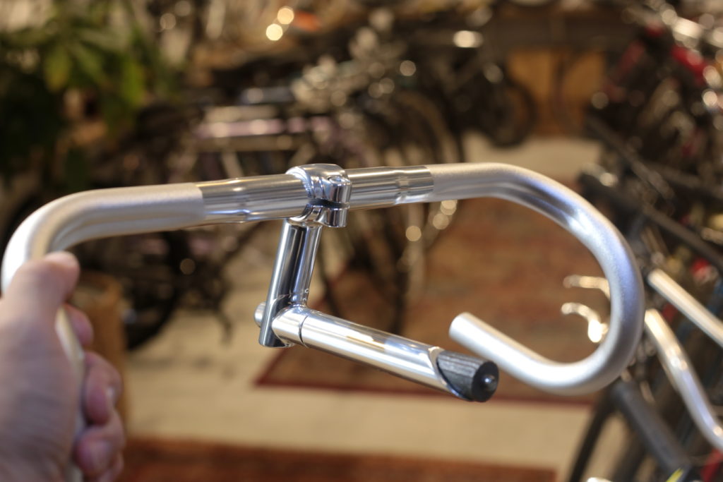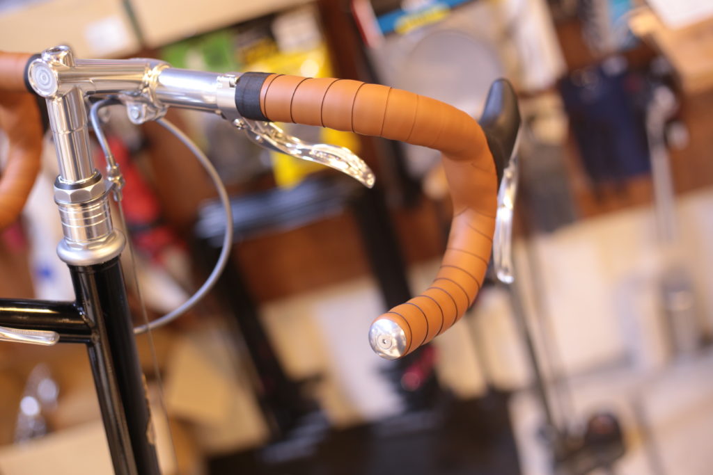クラシックな雰囲気の自転車なので、現代のロードバイクとはブレーキレバーを取り付ける位置が少し下になります。